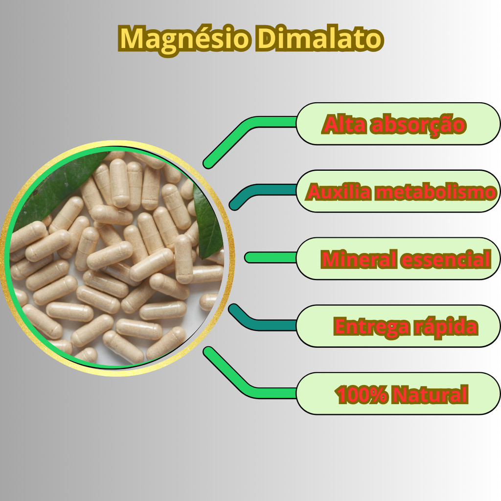 Magnésio Dimalato 500 mg – 120 cápsulas, Mineral essencial na rotina