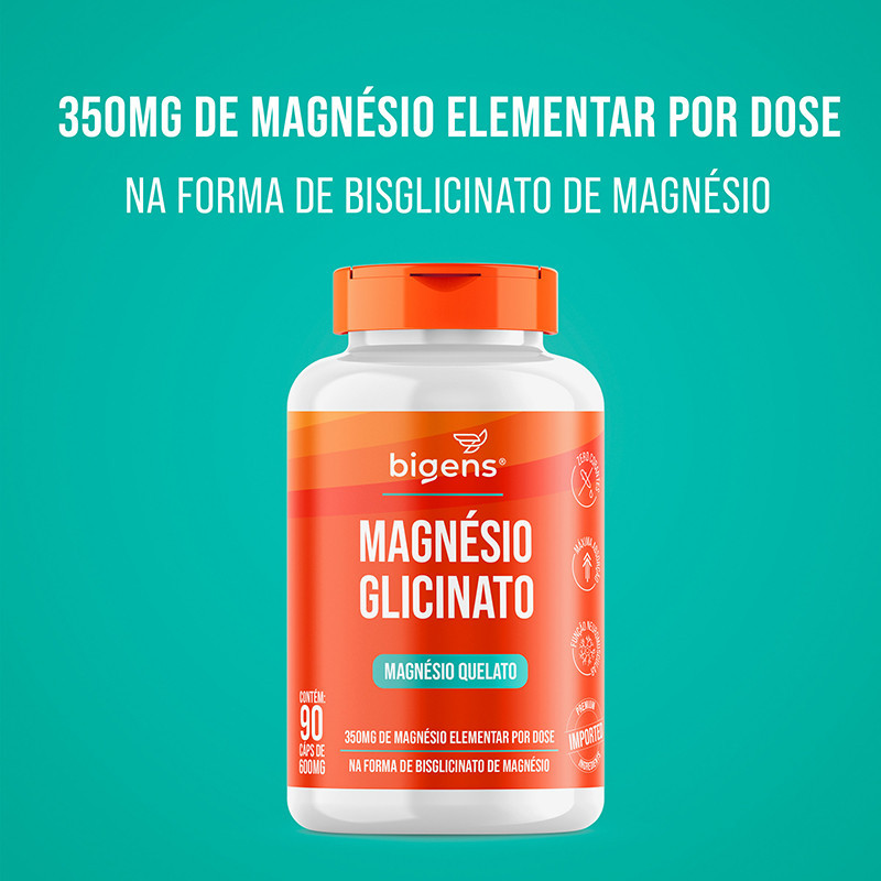 Magnésio Glicinato O Magnésio Glicinato Bigens é um suplemento de magnésio formulado para ter uma absorção otimizada no organismo. É composto por duas moléculas de Glicina para cada molécula de Magnésio, tornando-o biodisponível e atuando diretamente no aumento da velocidade de absorção. O magnésio pode auxiliar no funcionamento neuromuscular e muscular, no metabolismo energético, na formação de ossos e dentes, no equilíbrio dos eletrólitos, no metabolismo de proteínas, carboidratos e gorduras, além de auxiliar no processo de divisão celular. O magnésio elementar é um mineral difícil de ser absorvido pelo nosso organismo, por isso o Bio Magnésio Glicinato da Bigens é ligado a duas moléculas de Glicina. A Glicina auxilia na absorção do magnésio elementar, se tornando biodisponível. Além disso, o magnésio glicinato é conhecido por ter benefícios adicionais, graças ao papel a glicina. Ingredientes: Bisglicinato de magnésio, estabilizantes celulose microcristalina e amido, antiumectante dióxido de silício e fosfato tricálcico. Ingredientes da cápsula: Gelatina e água potável filtrada. NÃO CONTÉM GLÚTEN Sugestões de uso: Ingerir 3 cápsulas ao dia ou conforme orientação profissional. Cuidados de conservação: CONSERVE AO ABRIGO DA LUZ, CALOR E UMIDADE. MANTER O FRASCO HERMETICAMENTE FECHADO. APÓS ABERTO CONSUMIR EM ATÉ 90 DIAS. Atenção: Produto indicado para o grupo populacional ≥ 19 anos. Este produto não é um medicamento. Não exceder a recomendação diária de consumo indicada na embalagem. Mantenha fora do alcance de crianças. Suplemento Alimentar dispensado de registro conforme Resolução RDC nº 240/2018.