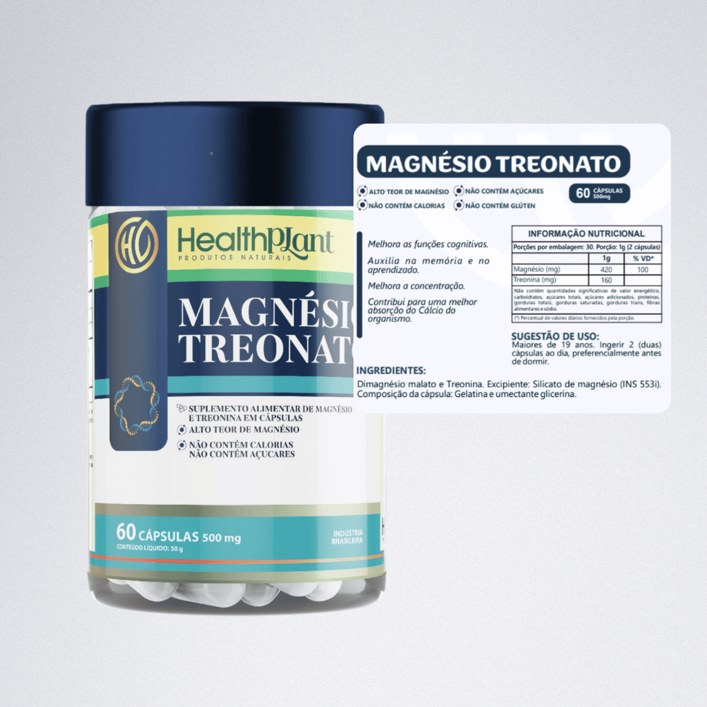 Enviamos com a validade entre 18-24 meses Acompanha Nota fiscal Sugestão de consumo: Ingerir de 3 cápsulas ao dia, ou conforme orientação médica ou nutricional. O Uso deste suplemento deve ser contínuo para melhores resultados. PRODUTO 100% ORIGINAL REVENDOR OFICIAL RECOMENDAÇÕES: Conservar o produto em local fresco e seco ao abrigo de raios solares. Após aberto consumir em até 90 dias. Gestantes, nutrizes e crianças de até 3 (três) anos somente devem consumir este produto sob orientação de nutricionista ou médico. Este produto não substitui uma alimentação equilibrada e seu consumo deve ser orientado por nutricionista ou médico. Consumir este produto conforme a recomendação de ingestão diária constante da embalagem." Ingredientes: Treonato de Magnésio, Excipiente: Silicato de magnésio., Antiumectante: dióxido de silício, Composição da cápsula: Gelatina umectante glicerina e água. NÃO CONTÉM GLÚTEN. Treonato de Magnésio O Magnésio é o quarto mineral mais prevalente do corpo humano, sendo de grande importância para diversos processos vitais como contração muscular, formação óssea, metabolismo energético, regulação do humor e do sono e, ainda, como cofator para absorção de nutrientes. Imagens Meramente Ilustrativas/ Exemplificativas Produto autorizado para comercialização conforme anexo I da RDC 27/2010 RDC 23/2000 RDC 240/2018 da Anvisa, aut. MS. 6.02234-1