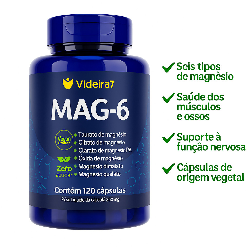 Magnésio MAG-6 (Dimalato/Quelato/Cloreto/Óxido/Citrato/Taurato) 120 Cápsula