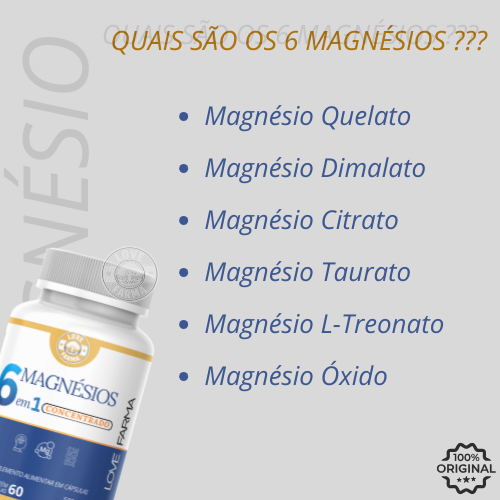 Magnésio Premium 6x1 | Suplemento Alimentar | Uso Diário | 60Cáps | Envio imediato