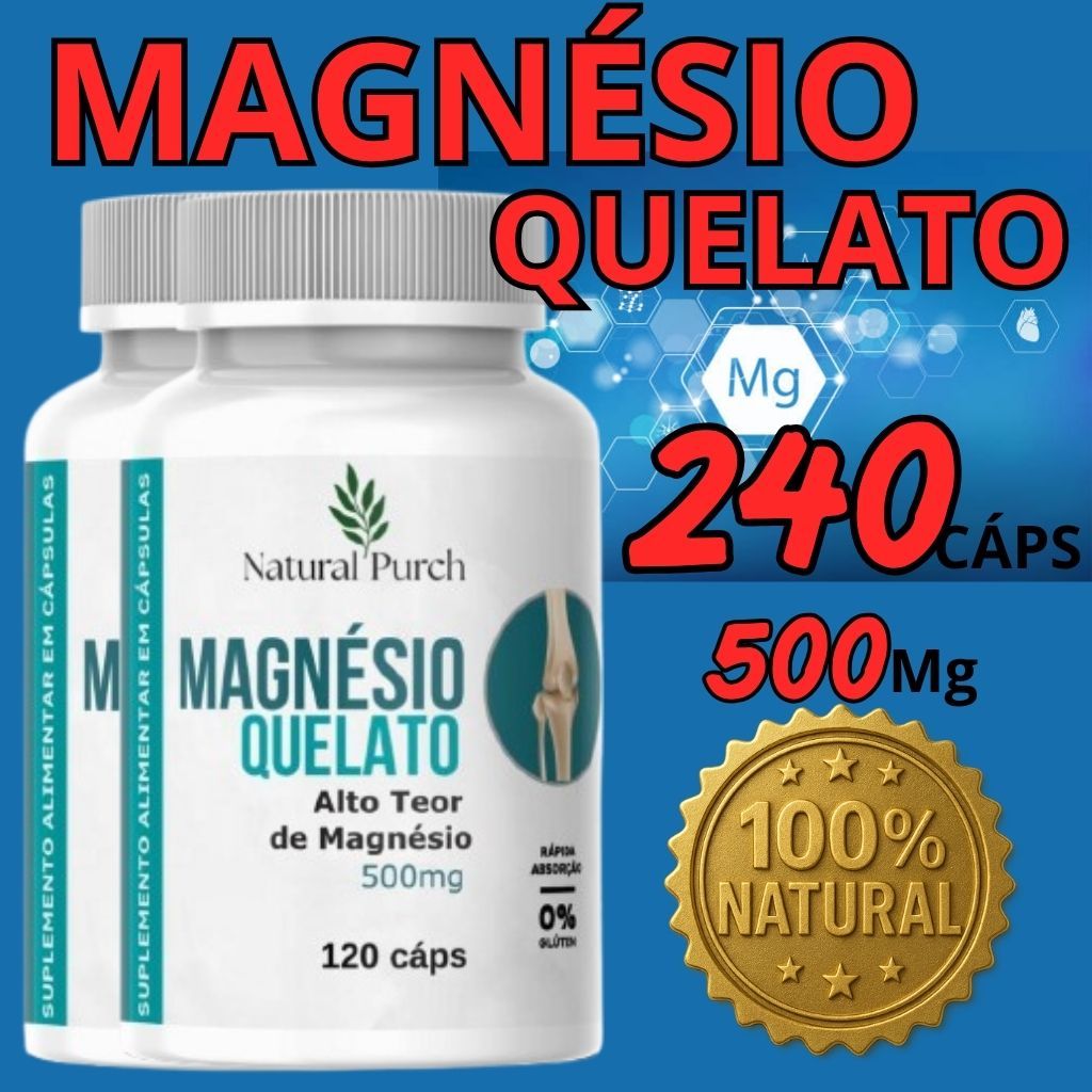 ENVIO NO MESMO DIA! Essencial para Sua Saúde e Bem-Estar Diário! O Magnésio Quelato é uma forma altamente biodisponível de magnésio, o que significa que é mais facilmente absorvido e utilizado pelo seu corpo. Essencial para mais de 300 reações bioquímicas, nossas cápsulas de 500mg (equivalente a 70mg de magnésio elementar) são ideais para garantir que você obtenha a dose diária necessária deste mineral vital. Por que escolher nosso Magnésio Quelato? Alta Biodisponibilidade: A forma quelata garante uma absorção superior, minimizando desconfortos gastrointestinais. 500mg por Cápsula: Dose prática e eficaz para suprir as necessidades diárias do seu corpo. 120 Cápsulas: Embalagem ideal para um ciclo de uso regular, promovendo a continuidade dos benefícios. Qualidade Premium: Produzido com os mais altos padrões de pureza e qualidade para sua segurança. Multibenefícios: Contribui para diversas funções corporais essenciais. Benefícios do Magnésio Quelato: Saúde Muscular: Ajuda na contração e relaxamento muscular, prevenindo cãibras e dores. Ossos Fortes: Fundamental para a formação óssea e absorção de cálcio. Bem-Estar Mental: Contribui para a redução do estresse, ansiedade e melhora a qualidade do sono. Energia e Disposição: Essencial para a produção de energia, combatendo a fadiga e o cansaço. Sistema Nervoso: Suporta a função nervosa e a transmissão de impulsos. Saúde Cardiovascular: Ajuda a regular a pressão arterial e a saúde do coração. Modo de Uso: Recomenda-se a ingestão de 1 a 2 cápsulas ao dia, preferencialmente com as refeições, ou conforme orientação de um profissional de saúde. Informações Importantes: Produto isento de registro conforme RDC ANVISA 240/2018. Consulte seu médico ou nutricionista antes de iniciar o uso, especialmente se estiver grávida, amamentando ou fazendo uso de outros medicamentos. Manter fora do alcance de crianças. Conservar em local fresco, seco e ao abrigo da luz. Garanta a dose diária de bem-estar que seu corpo merece! Adquira já seu Magnésio Quelato!