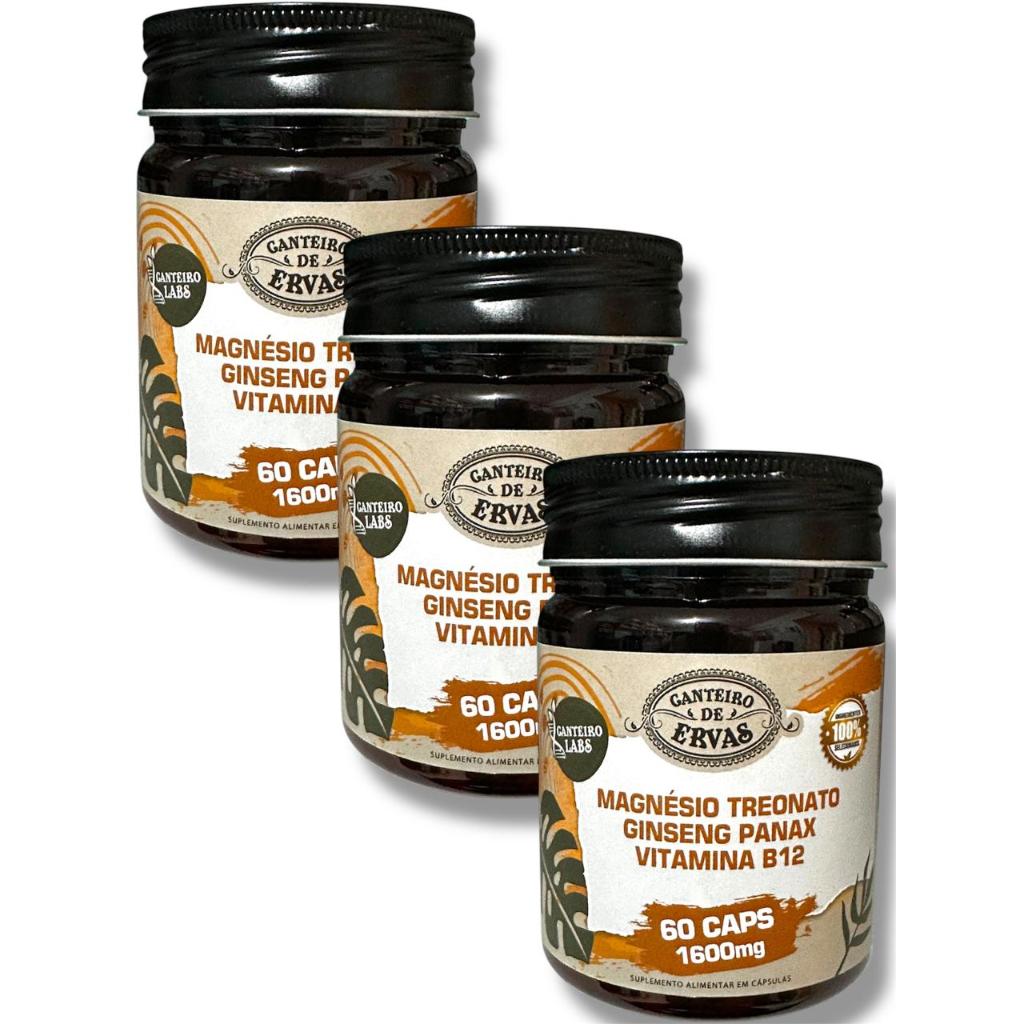 Magnésio Treonato + Ginseng Panax + Vitamina B12 1600mg 60caps Canteiro de Ervas