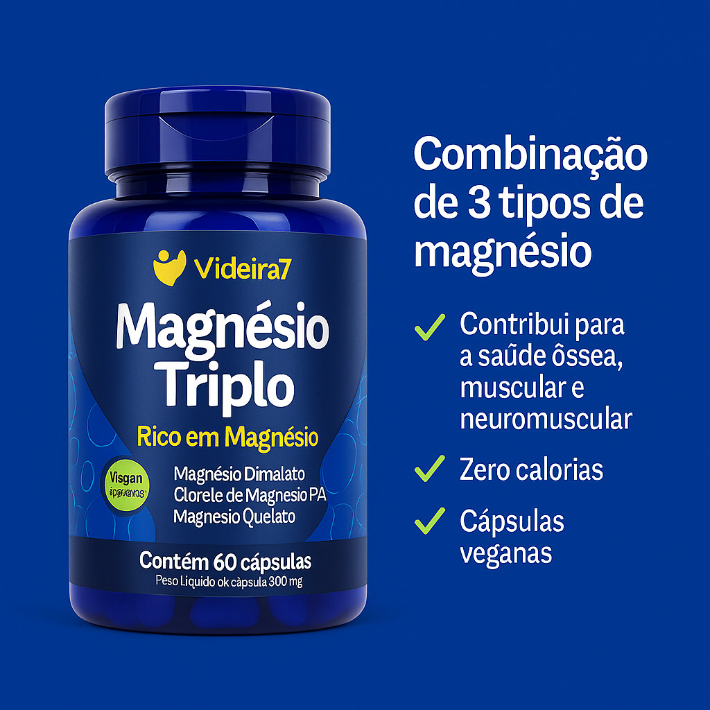 Sobre o produto: É a melhor fonte suplementar de magnésio para um corpo forte e saudável. Um dos minerais mais importantes na dieta, o magnésio é essencial para músculos e ossos fortes, saúde cardiovascular e função do sistema nervoso. Recomendação de Uso: Consumir 03 cápsulas por dia. Cuidados de Conservação: Manter o produto em lugar seco e arejado. Após aberta a embalagem, manter a tampa bem fechada para garantir as características do produto e recomenda-se o consumo em até 90 dias. Ingredientes: Cloreto de magnésio, Bisglicinato de magnésio, Dimalato de magnésio, Amido de milho, Antiumectante dióxido de silício INS 551. Composição da cápsula: gelatina, glicerine, e água purificada. NÃO CONTÉM GLÚTEN. Sobre o envio: A PRONTA ENTREGA- ENVIO EM ATÉ 24 HORAS ÚTEIS! DÚVIDAS DE SEMPRE: 1) E se meu produto não chegar? TODOS OS PACOTES SEGUEM COM O PROTOCOLO DE RASTREIO E VOCÊ PODE CONSULTAR DIARIAMENTE PARA VER ONDE ELE ESTA, CASO OCORRA ALGUM SINISTRO A MERCADORIA ESTÁ ASSEGURADA PELO SISTEMA DO MARKETPLACE E VOCÊ RECEBE SEU DINHEIRO DE VOLTA. 2) Qual a validade? VOCÊ IRÁ ENCONTRAR A VALIDADE ASSIM COMO O NÚMERO DO LOTE NA PARTE SUPERIOR DA EMBALAGEM. TRABALHAMOS APENAS COM PRODUTOS FRESCOS, DESSA FORMA VOCÊ RECEBERÁ O PRODUTO COM UMA VALIDADE EXTENSA. DEPENDENDO DO PRODUTO, DE ATÉ 2 ANOS. Ficou com alguma dúvida? Entre em contato com a gente!