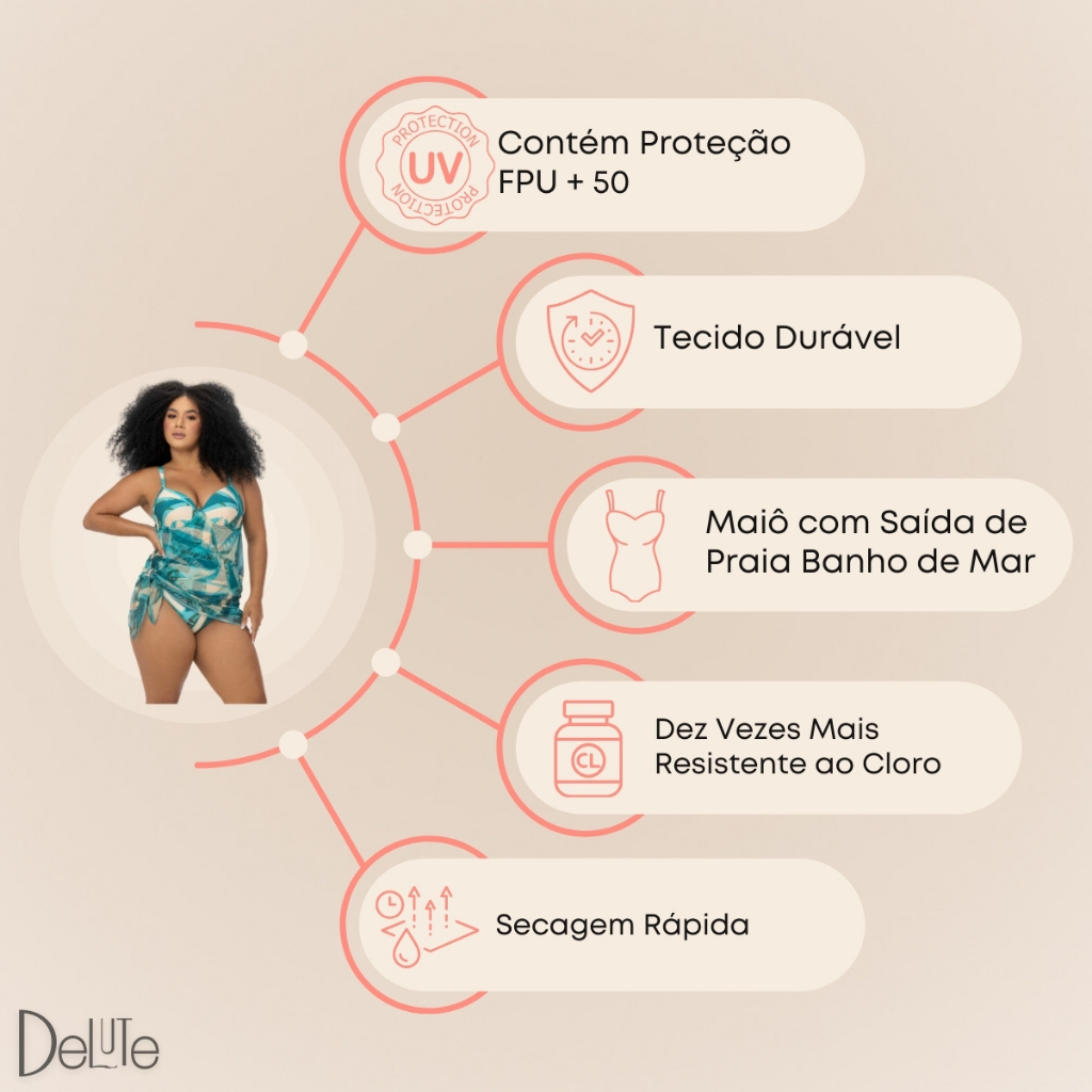 Maiô Banho de Mar Moderno com Saída de Praia Alça Ajustável e Bojo Estampado Moda Praia FPU 50+