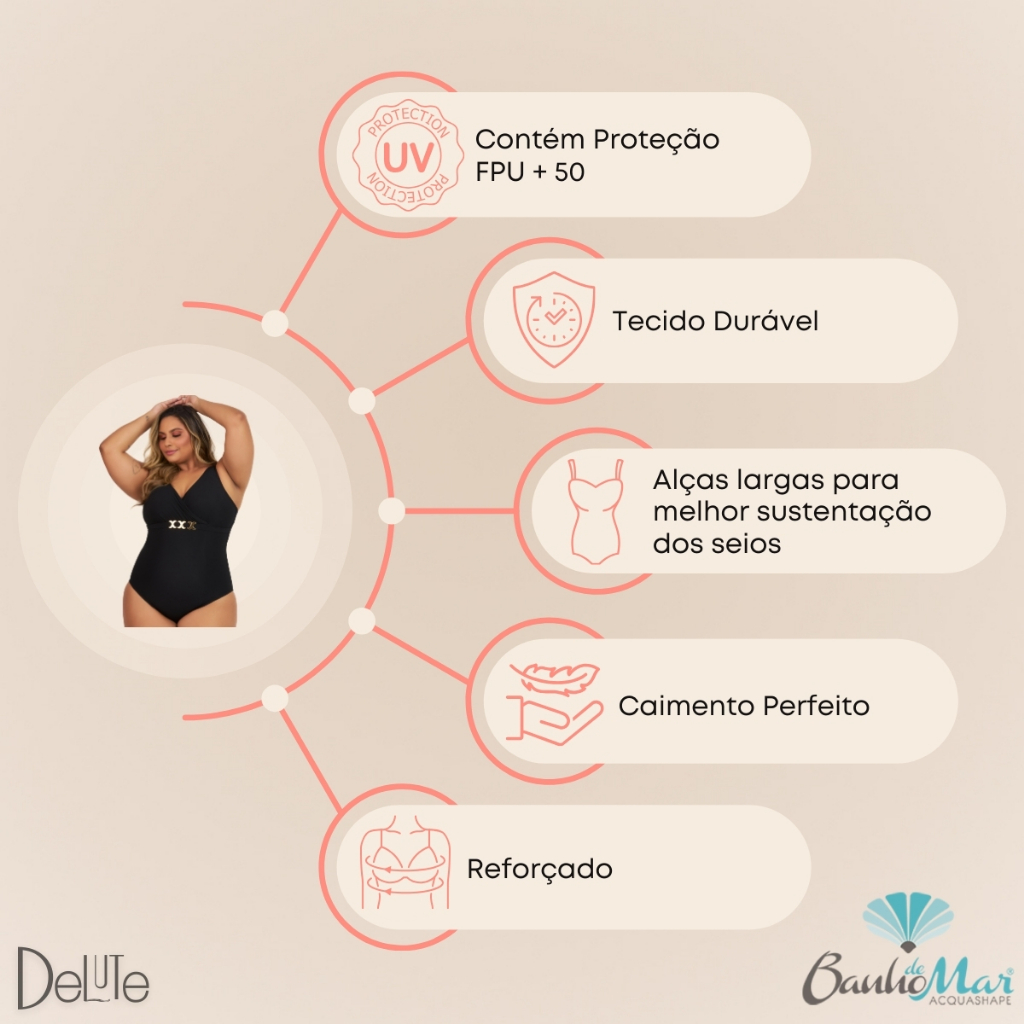 Maiô Forte Compressão Modelador Banho De Mar Ref. 617534. Para quem busca um lindo Maiô com Compressão e durabilidade, esse produto é a escolha perfeita! Afinal, todos os nossos maiôs são desenvolvidos com materiais de elevada tecnologia em absorção dos raios ultravioleta (UV). Possuem fator de proteção ultravioleta (FPU) 50+, com capacidade de bloquear 98% dos raios UV. São maiôs que cuidam de você e te deixam mais linda, confortável e confiante! Caracteristicas: - Modelagem Anatômica; - Decote, alças e bojos de boa profundidade oferecendo um caimento perfeito; - Fivelas com Banho Especial; - Costas de modelagem fechada adequando a sustentação necessária e fivelas antioxidantes; - Proporciona compressão com o objetivo de modelar e dar sustentação à musculatura; - Sua construção permite melhor desempenho com uma boa transpiração. Composição: Tecido: 75% Poliamida 25% Elastano Forro Corpo: 88% Poliamida 12% Elastano