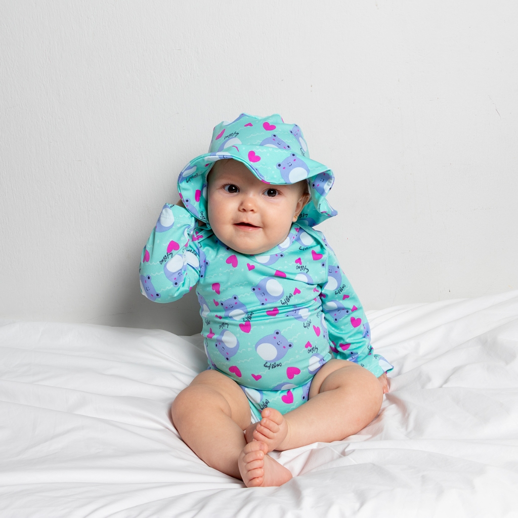 Conjunto Maiô e chapéu com proteção UV50+ Contra raio solar Maiô Infantil. Possui Manga Longa Chapéu da mesma estampa do maiô. Modelos com Chapéu possuem abertura com botão de pressão entre pernas OBS: ALGUNS MODELOS NÃO TEM CHAPÉU, OS QUE APARECEM NA FOTO COM CHAPÉU VÃO COM CHAPÉU Tecido externo: 90% poliester e 10% elastano Ocasião de uso: Ideal para usar piscinas, praia. Diferencial do produto: tecido com toque macio; proteção solar UV50+ (não substitui o uso de filtro solar); conforto. Como lavar e conservar bem meu produto: Lavagem à mão, temperatura máxima de 40c; não alvejar / não branquear; não secar em tambor; secagem em varal; não passar; não limpar a seco, não remover manchas com solventes; não guarde a peça úmida ; não use amaciantes ou produtos com alvejantes a base de cloro; evite contato com superfícies ásperas ; cloro e bronzeadores podem manchar o produto; após o uso, enxague bem a peça com agua fria; a contínua exposição à luz forte e água clorada pode deteriorar alguns tipos de tecidos e cores. Garantia por defeito: Deverá ser encaminhado dentro da embalagem original; Sem indícios de uso; acompanhado de nota fiscal e com todos os itens constantes na solicitação de troca. Medidas Maiô Tamanho - Altura x Tórax (circunferência) x Manga M - 38cm x 42cm x 23cm G - 40cm x 44cm x 25cm GG - 42cm x 46cm x 27cm 1 - 44cm x 48cm x 30cm 2 - 46cm x 50cm x 32cm 3 - 48cm x 52cm x 34cm Circunferência Chapéu Aproximadamente M - 40cm G - 43cm GG - 45cm 1 - 48cm 2 - 50cm 3 - 51cm Sugestão de tamanhos M - 3 á 6 meses G - 6 á 9 meses GG - 9 á 11 meses 1 - 1 Ano 2 - 1 á 2 Anos 3 - 2 á 3 Anos