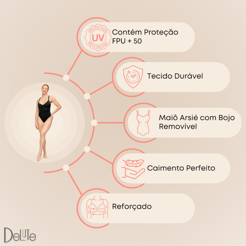 Maiô Clássico Arsiè Tecido Texturizado com Bojo Removível Alça Ajustável Moda Praia FPU 50+ Verão