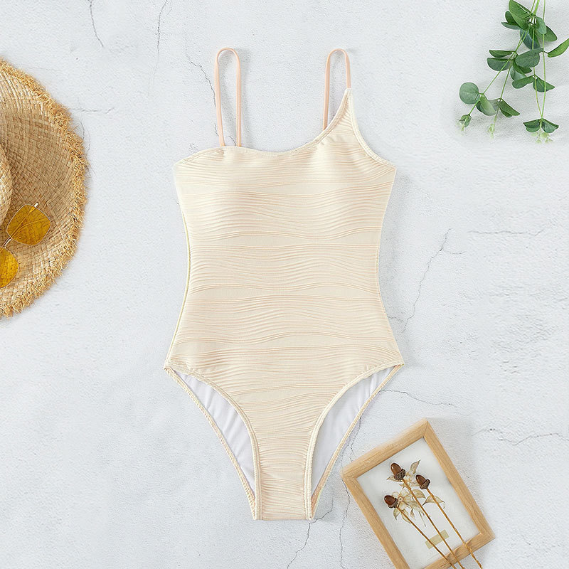 Maiô de uma peça feminino tecido plissado biquíni praia maiô de primavera quente