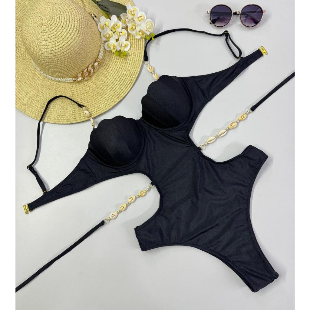 Maiô Engana Mamãe com Bojo e Detalhes em Concha e Búzios – Moda Praia Feminina Estilosa P ao GG