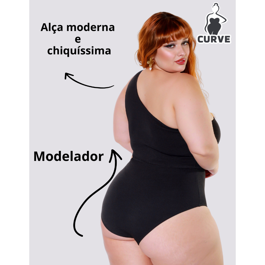 Maiô Feminino Plus Size Body Praia Piscina Decote Alça de Um Ombro Só Elegante Despojado Até G4