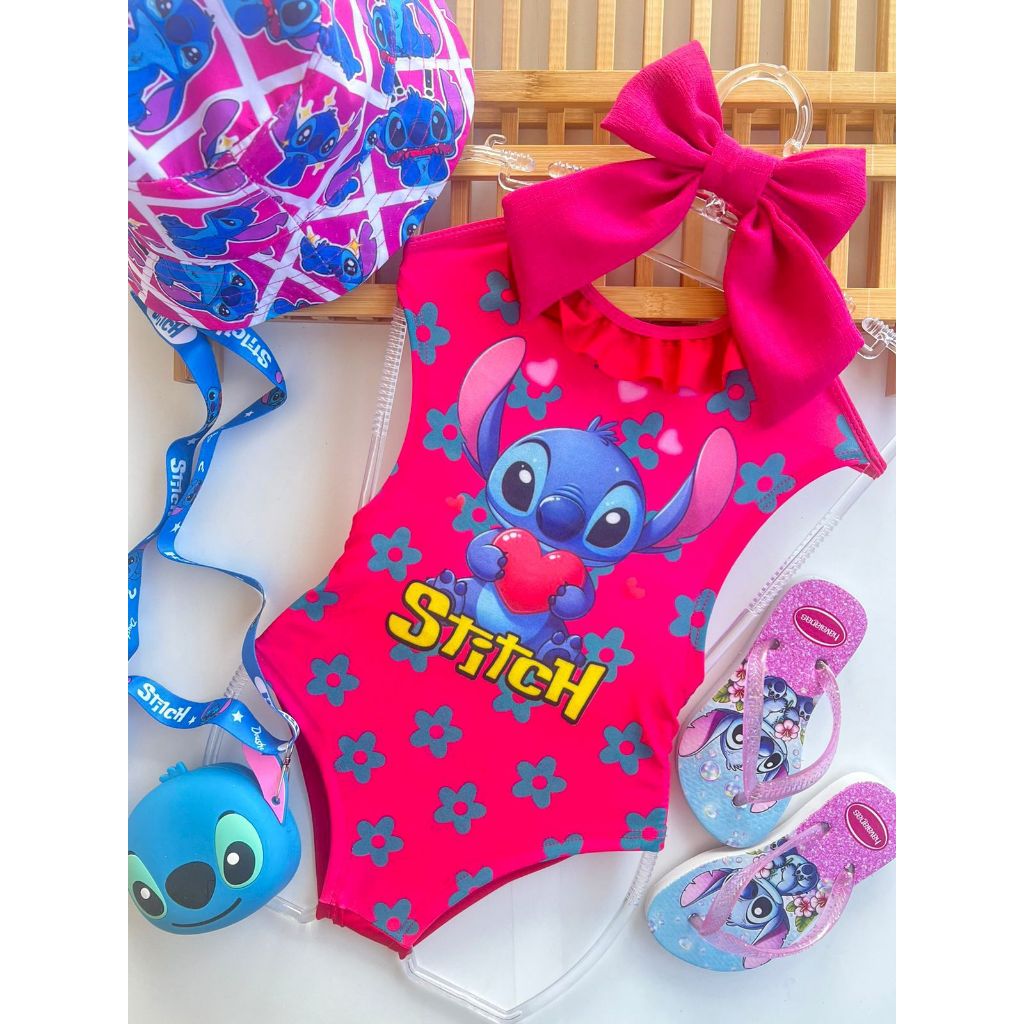 Maio Infantil Divertidamente Stitch Azul Rosa Biquini Infantil Stitch Divertidamente Maio Verão Praia Temático Proteção