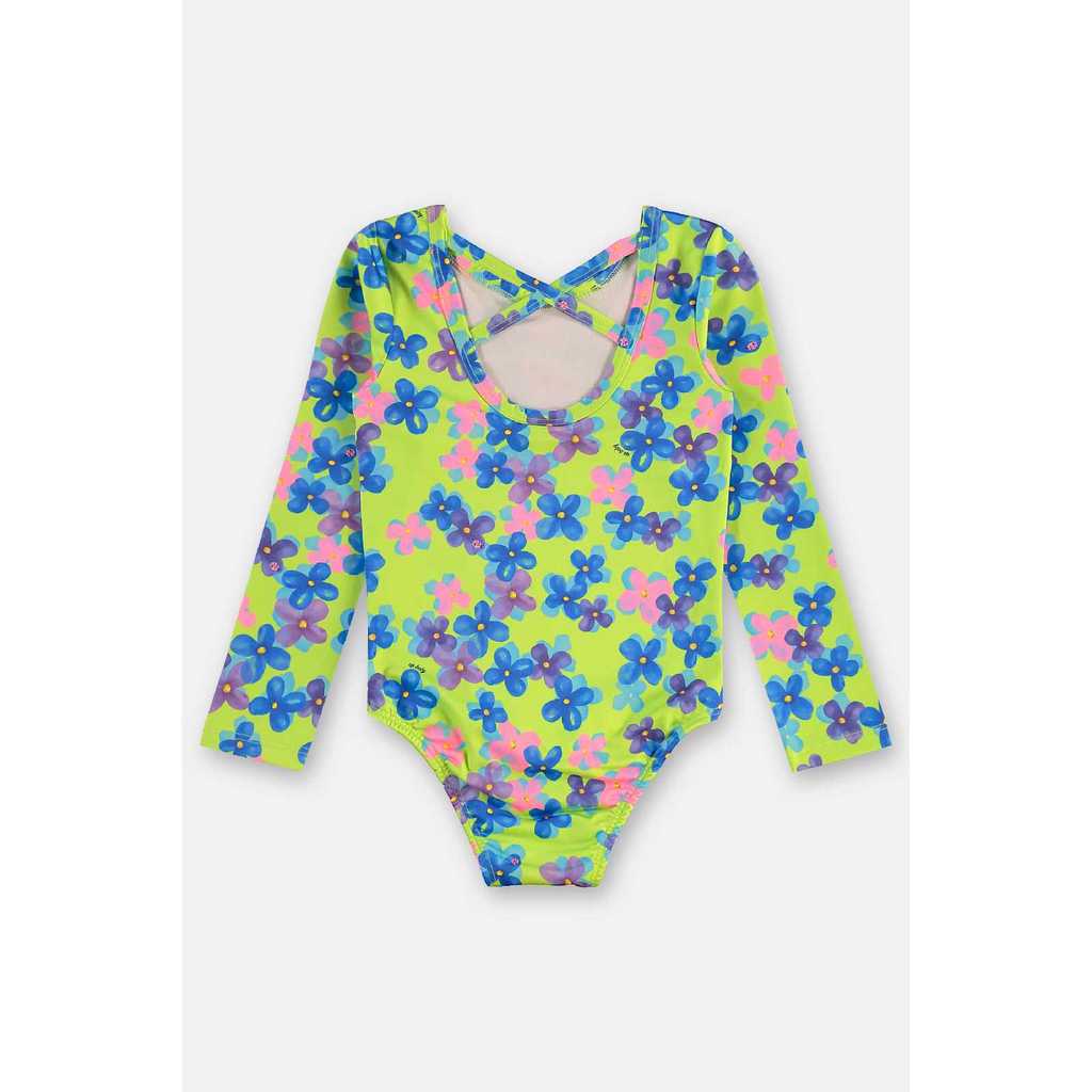 Maiô infantil para menina, com proteção FPS +50, mangas longas e estampa alegre. Possui forro e abertura inferior com botões de pressão nos tamanhos menores para facilitar a troca. Confeccionado em malha elástica e macia, é ideal para praia e piscina, oferecendo conforto e segurança às pequenas.Tecido: Maiô: Poliéster e Elastano FPS +50 / Forro: PoliamidaComposição: 84% Poliéster 16% elastano/Forro: 100% PoliamidaModelagem: JustaComprimento Mangas: LongaComprimento: CurtoForro: SimDecote/Gola: RedondoFechamento: Botões de pressão entre as pernas