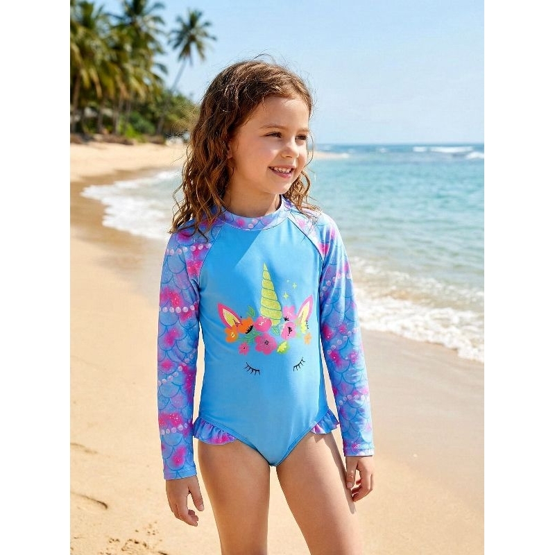 🌈 Maio Infantil Manga Longa Unicórnio - Proteção e Diversão para o Verão! 🦄✨