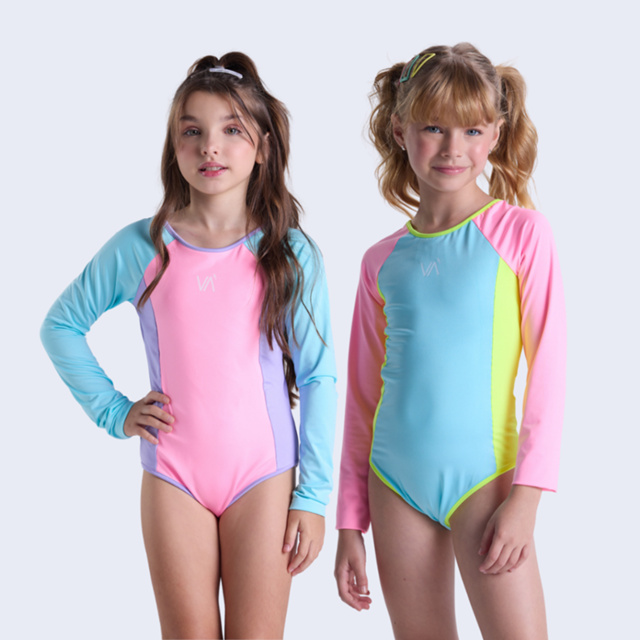 Maiô Infantil Manga Longa UV50+ Recortes Coloridos