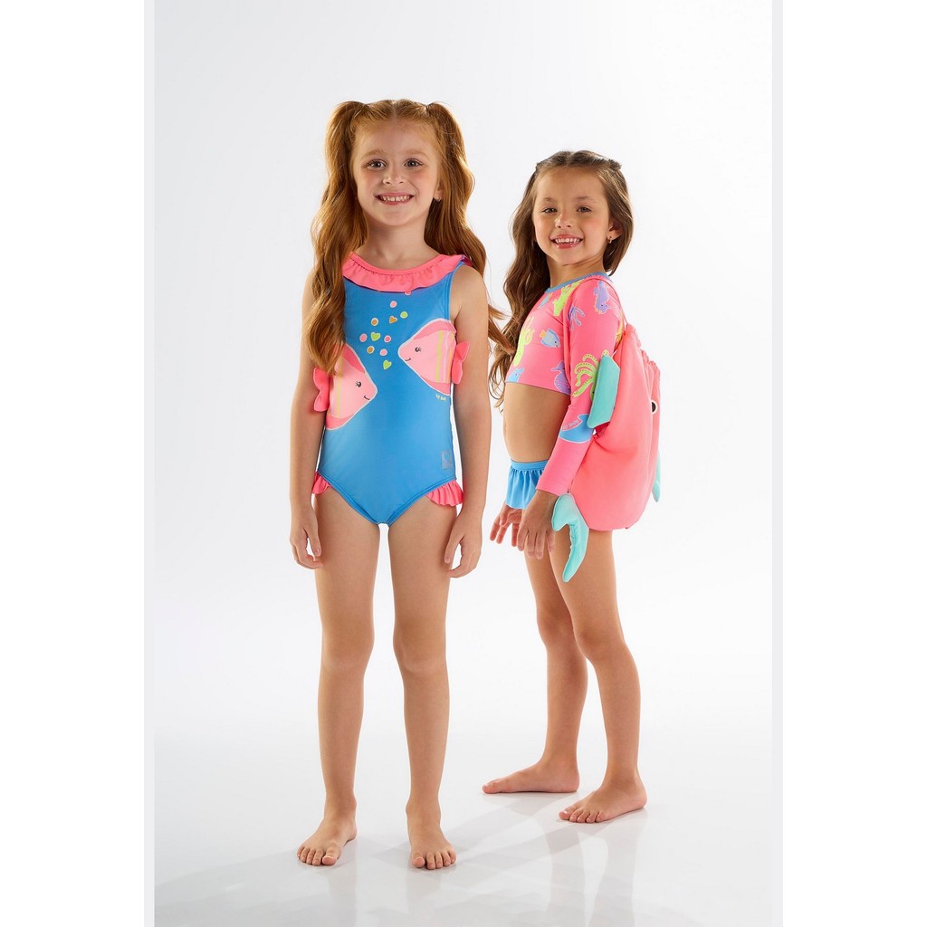 Maiô infantil com proteção UV (FPS +50), confeccionado em malha sublimada (composta por poliéster e elastano), garantindo segurança e conforto nas brincadeiras ao sol. Conta com uma estampa encantadora de peixinhos e detalhes bordados, que dão destaque extra a peça. A peça ainda possui babados franzidos delicados, e forro interno, que oferece maior conforto. Ideal para momentos de lazer na praia ou na piscina, é perfeito para as pequenas aproveitarem o verão com estilo e proteção.Tecido: Maiô: Poliéster e Elastano com Proteção UV / Forro: PoliamidaComposição: 84% poliéster 16% elastano / Forro: 100% poliamidaModelagem: JustaModelo: RegataModelo Mangas: RegataComprimento: CurtoForro: SimCintura: Média