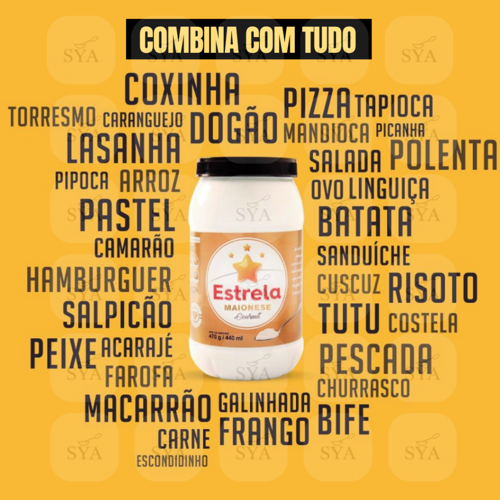 Maionese Estrela Gourmet 470g – A Maionese Que Conquista no Primeiro Sabor! Se você ama descobrir novos sabores, prepare-se: a Maionese Estrela Gourmet 470g é a sensação que está surpreendendo quem experimenta – e conquistando cada vez mais fãs! 😍 Feita a partir de uma receita caseira tradicional dos anos 70, aperfeiçoada ao longo de décadas, ela se tornou um verdadeiro case de sucesso nas regiões onde é comercializada. Não é por acaso: cada pote entrega uma experiência única para o paladar. 🥄 Por que a Estrela Gourmet é tão especial? ✔ Produzida com ingredientes selecionados e de altíssima qualidade. ✔ Textura suave e cremosa que deixa qualquer preparo mais gostoso. ✔ Sabor marcante, equilibrando perfeitamente acidez e cremosidade. ✔ Versátil: combina com hambúrgueres, sanduíches, saladas, batatas, e ainda dá um toque irresistível em patês, molhos e até pratos quentes. Perfeita para o dia a dia e também para quem gosta de surpreender na cozinha! 📦 Embalagem prática de 470g Fácil de armazenar, fácil de usar e ideal para toda a família. 💛 Maionese Estrela Gourmet Não tem comparação… E quem prova, se apaixona! 😍 ✨ Experimente e sinta a diferença! ✨ Obs: As datas podem variar de acordo com os lotes. Peso: 470g/ 440ml