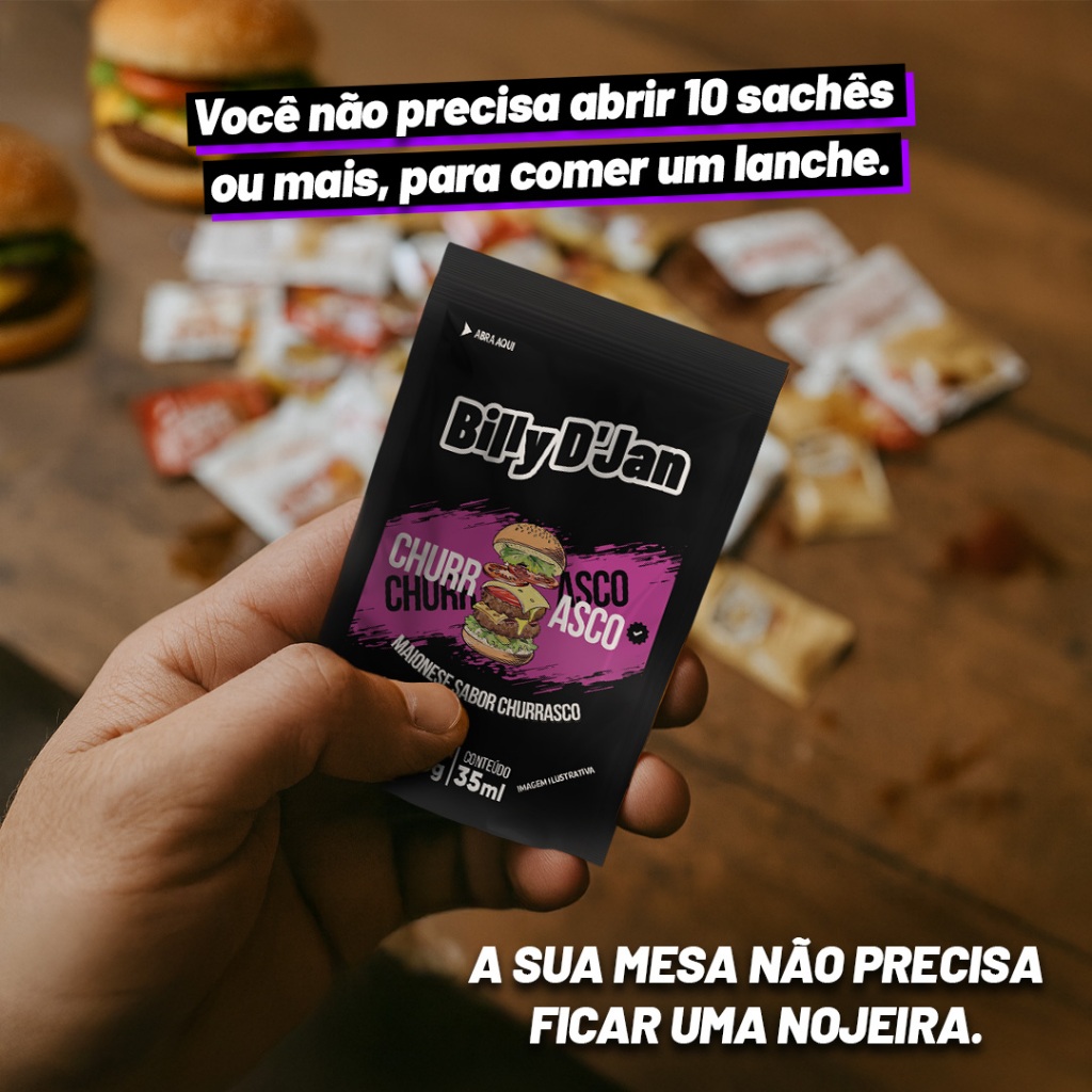 Maionese Temperada Sabor Churrasco Billy D´Jan 35G - 10 Unidades | Lanches Delivery | Hamburguerias | Lanches