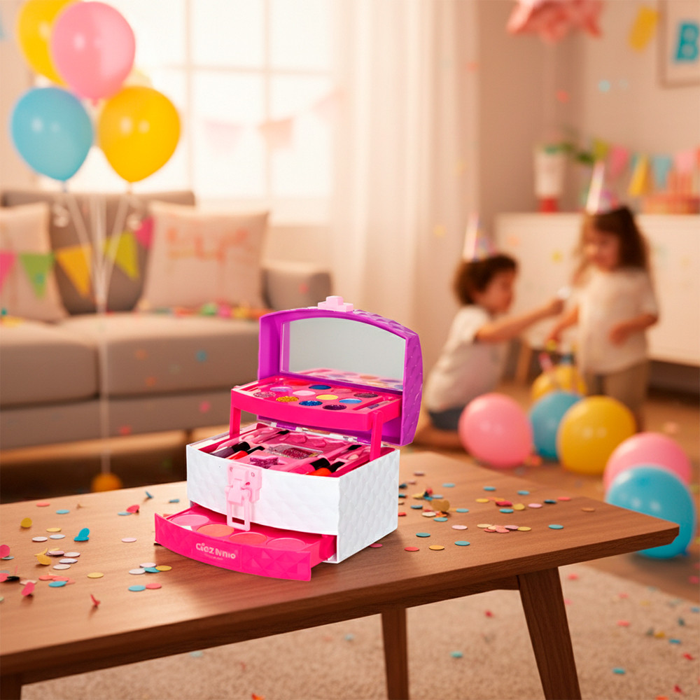 Chezninio Kit Maquiagem Infantil para Meninas - Completo, Lavável e Seguro para Crianças - Brinquedo de Faz de Conta com Cores Reais - Ideal para Presente 1. Kit Maquiagem Infantil Chezninio K21002B: Explore a diversão com este conjunto completo e vibrante, desenvolvido para despertar a criatividade das meninas. Um brinquedo de maquiagem que estimula a imaginação em brincadeiras de faz de conta e festas. 2. Maquiagem Lavável e Segura para Crianças: Projetado com ingredientes de fácil remoção, este kit é 100% lavável com água, garantindo tranquilidade aos pais. Perfeito para a pele delicada, oferece uma experiência de beleza segura e sem preocupações para as pequenas. 3. Conjunto Completo e Versátil: Este estojo de maquiagem infantil inclui uma variedade de itens como batons coloridos, sombras suaves, esmaltes à base de água e pincéis ergonômicos. Tudo o que é preciso para criar looks divertidos e lúdicos, incentivando a coordenação motora. 4. Presente Perfeito para Meninas: Surpreenda com o kit maquiagem Chezninio K21002B, a escolha ideal para aniversários, Natal ou celebrações especiais. Um presente que combina diversão e desenvolvimento criativo, tornando qualquer ocasião inesquecível. 5. Praticidade e Organização: Pensado para facilitar o uso e a guarda, o conjunto oferece um design compacto que permite levar a diversão para qualquer lugar. Fácil de limpar e guardar, garante que todos os itens estejam sempre organizados para a próxima brincadeira. Garantia 90 dias