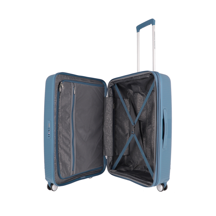 A mala média Curio azul TSA EXP é a companheira perfeita para suas viagens, projetada para trazer não apenas estilo, mas também segurança e funcionalidade. Esta mala se caracteriza por: • Fitas elásticas cruzadas em ambos os compartimentos, que garantem que suas pertenças permaneçam seguras e organizadas durante toda a viagem. • Um separador interno com zíper e um prático bolso com zíper, perfeitos para manter os objetos menores acessíveis e em ordem. • Cadeado TSA incluso, oferecendo a tranquilidade de que suas pertenças estão protegidas, para que você possa viajar sem preocupações. • Sistema de spinner de 8 rodas, que facilita o deslocamento por qualquer tipo de terreno com mínimo esforço. • Capacidade expansível, proporcionando a flexibilidade de aumentar o espaço disponível para suas pertenças, ideal para aqueles viagens em que você precisa levar mais coisas. Desfrute de suas aventuras com a mala média Curio azul TSA EXP da American Tourister, sua companheira ideal para viajar sem limitações. Adquira a sua agora e viaje com conforto e estilo! EXTERIOR Cadeado TSA Sistema de 8 rodas giratórias Expansível INTERIOR Cintas elásticas cruzadas em ambos os compartimentos Divisor interno com tela Bolso com zíper ESPECIFICAÇÕES Cor: Azul Jeans Capacidade: 88 Litros Capa de Mala: Rígida Garantia: 3 Anos Tamanho: Média Tipo de Produto: Mala Material: Polipropileno Coleção: Curio Modelo: Spinner 69/25 Exp Tsa Rodas: Duplas Peso: 3.8 kg Dimensões: 69 x 50 x 30 cm