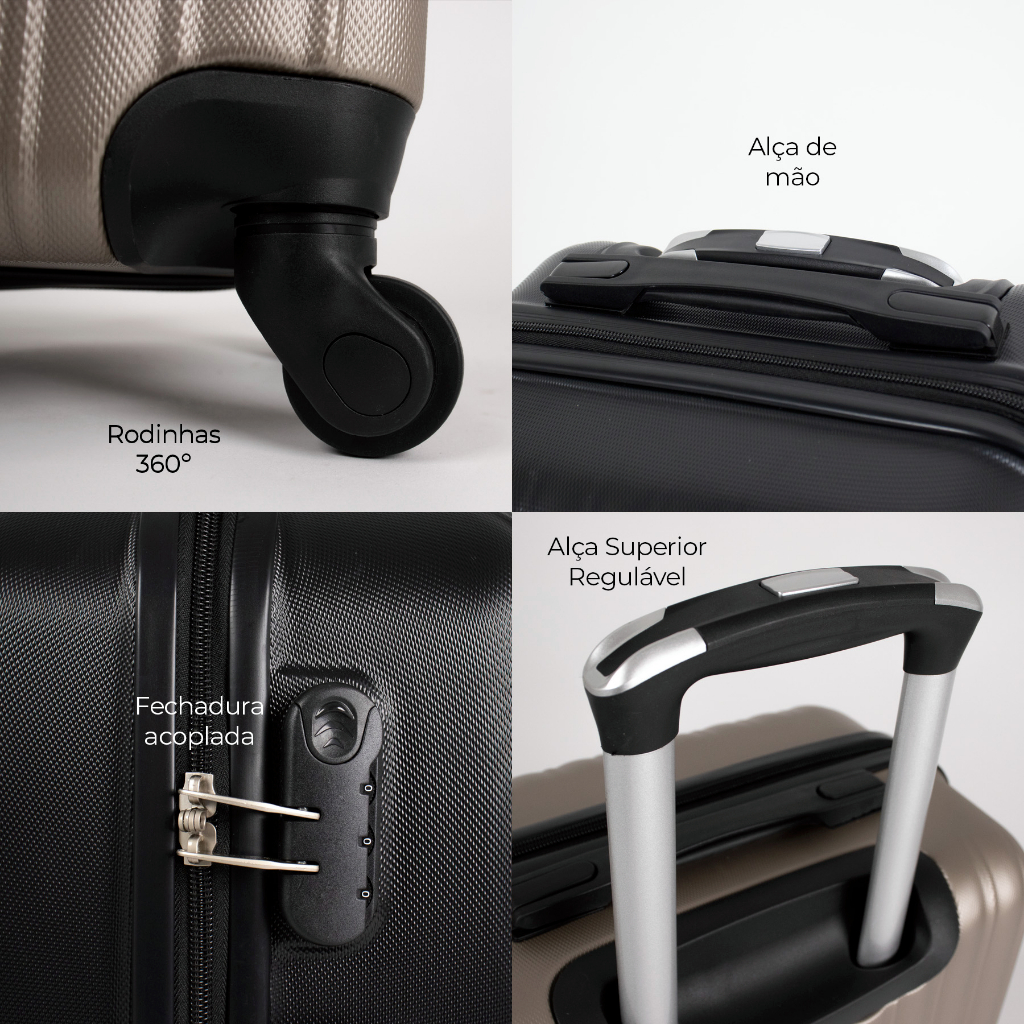 Mala de Bordo 2 peças Preta e Champagne Londres Swiss Move