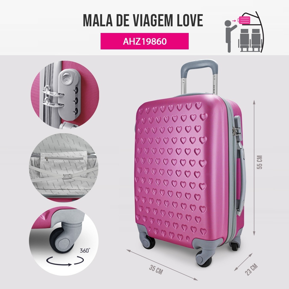 Mala de Viagem 10kg Bordo Love Pink - Jacki Design