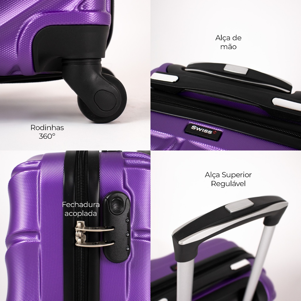 Vai viajar? Que tal evitar pagar para despachar a mala de viagem?! Com a Mala pequena de Bordo da linha Havana da Swiss Move, você fica isento de pagamentos. Isso porque, a Mala de Mão tem as medidas desejadas pela Agência Nacional de Aviação Civil - ANAC. Além disso, a Mala de viagem pequena Havana é fabricada em ABS, por isso, é mais resistente e tem maior durabilidade de uso, possui 4 rodas giratórias, que facilita a locomoção, alça de mão e fechadura com segurança. O interior da Mala de Bordo pequena é totalmente forrado em poliéster, contém cinta elástica cruzada com trava, divisórias com zíper e bolso, que são ideias para separar seus pertences dentro da Mala de Viagem. A Mala pequena de Bordo Havana tem medida total de 53 de altura, 33 de largura e 21 cm de profundidade (as medidas são total com a alça, fechadura e rodinhas), com capacidade de 10 kg e pesa 2,50 kg. Atenção: preço do anuncio é referente a uma unidade. Importante: Por favor, prestar atenção na cor selecionada durante a compra, pois ao finalizar o pedido não conseguimos fazer alterações, assim, você irá receber na cor escolhida, em caso de erro, pedimos que cancele e compre novamente na cor certa.