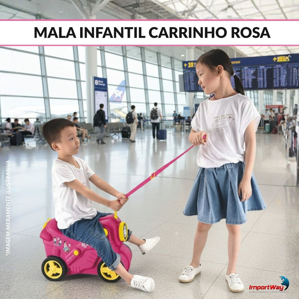 Mala Infantil Carrinho Viagem 2 em 1 Rosa Importway Pode Sentar e Ser Puxada Ideal Para Viagens Mais Divertidas