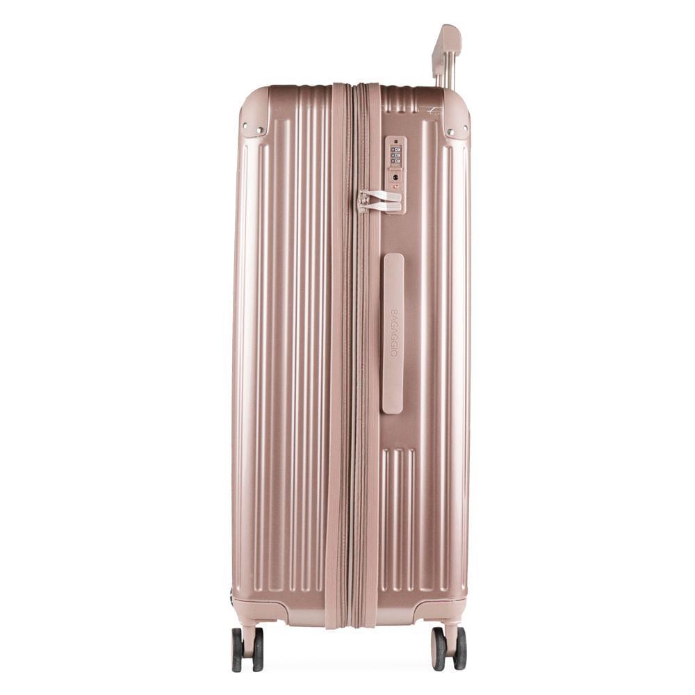 Mala Média 23 kg Policarbonato 4 Rodas 26" Monte Carlo Rosé Mala Média 23 kg Policarbonato 4 Rodas 26" Monte Carlo Rosé Ziper Expansível: Zíper Expansível O zíper expansível faz com que a mala de viagem ganhe alguns centímetros de espaço extra, perfeito para acomodar itens a mais. Cadeado TSA: Cadeado TSA A melhor opção para proteger sua bagagem em voos internacionais. Os cadeados TSA possuem abertura para uma chave universal, assim, a segurança do aeroporto consegue abrir o cadeado e inspecionar a bagagem sem precisar estourar o cadeado e danificar sua mala. Rodas 360º: Rodas 360° As rodas com giro 360º facilitam o deslocamento da mala de viagem, fazendo com que ela possa ser conduzida em qualquer direção, sem precisar incliná-la e sem fazer esforço. Especificações:Material: Policarbonato Peso (kg): 4,9 Dimensões: 77 x 50,5 x 31,5 cm Capacidade: 122 L Cor: Rosé Marca: Bagaggio Faixa Etária: Adulto Outros atributos: - Rodas 360°. - 4 Rodas. - Espaço interno com cinta organizadoras. - Cadeado TSA. - Divisórias interna. Especicações: Marca: Bagaggio Dimensões: 71,5 x 47 x 28,5 cm Marca: Bagaggio Material: Policarbonato Atributos: Zíper Expansível Peso (kg): 4,74 kg Capacidade (L): 95,7 L Altura da embalagem do vendor: 68 cm Comprimento da embalagem do vendor: 43 cm Largura da embalagem do vendor: 31 cm Peso da embalagem do vendor: 3500 g Garantia: Garantia Vitalícia *confira regulamento