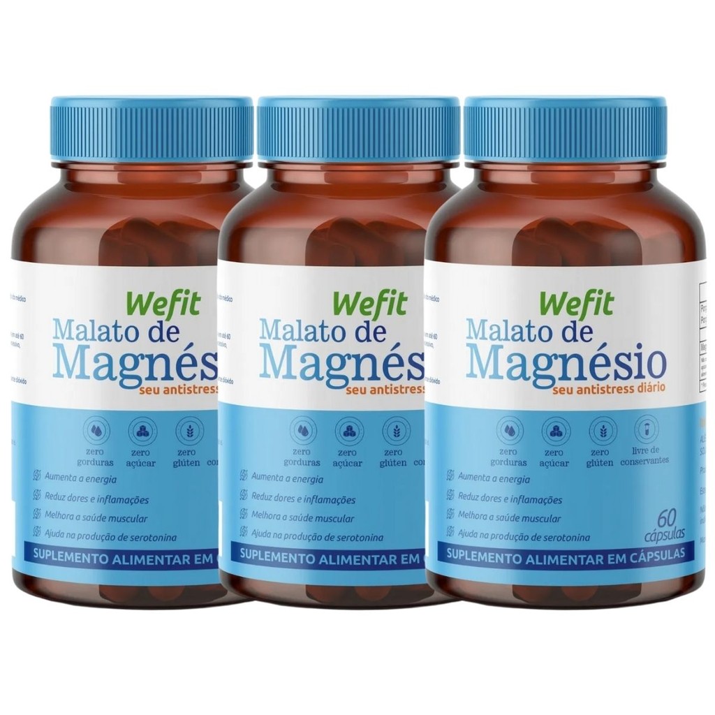 Sobre o Produto: O Malato de Magnésio WeFit é um suplemento alimentar desenvolvido para fornecer magnésio com alta biodisponibilidade, na forma de malato de magnésio. Este mineral é essencial para o bom funcionamento do organismo, sendo fundamental em processos como a contração muscular, a síntese de proteínas, o metabolismo energético e a regulação do equilíbrio eletrolítico. Com fórmula cuidadosamente elaborada, o produto é indicado para quem busca suporte nutricional para a saúde muscular, óssea e metabólica, além de contribuir na redução do cansaço físico e mental. Como Consumir: Ingerir 2 cápsulas ao dia, preferencialmente junto das refeições, ou conforme orientação de profissional da saúde habilitado. Benefícios: - Auxilia no funcionamento adequado dos músculos - Contribui para a manutenção da saúde óssea e dentária - Participa da síntese de proteínas e no metabolismo energético - Ajuda na regulação do equilíbrio de eletrólitos no organismo - Pode contribuir para a redução da fadiga e do cansaço - Atua positivamente no funcionamento do sistema nervoso Alergênicos: Não contém glúten. Ingredientes: Malato de magnésio.Composição da cápsula: gelatina e corante dióxido de titânio. Advertências - Produto indicado para maiores de 19 anos. - Não deve ser consumido por gestantes, lactantes e crianças, exceto sob orientação médica ou de nutricionista. - Não exceder a dose diária recomendada. - Suplementos alimentares não substituem uma alimentação equilibrada e um estilo de vida saudável. - Em caso de reações adversas ou hipersensibilidade a qualquer componente da fórmula, descontinuar o uso e procurar orientação médica. Cuidados e Conservação - Após aberto, manter a embalagem bem fechada. - Consumir em até 60 dias. - Armazenar em local fresco, seco, ao abrigo da luz, da umidade e de fontes de calor excessivo. Conclusão: O Malato de Magnésio WeFit é uma escolha eficiente para quem deseja otimizar a ingestão diária de magnésio com um suplemento de alta absorção. Sua fórmula atua em diversas funções essenciais do organismo, promovendo suporte à saúde muscular, óssea e ao metabolismo energético. Ideal para complementar uma rotina saudável e ativa, proporcionando maior bem-estar e equilíbrio corporal.