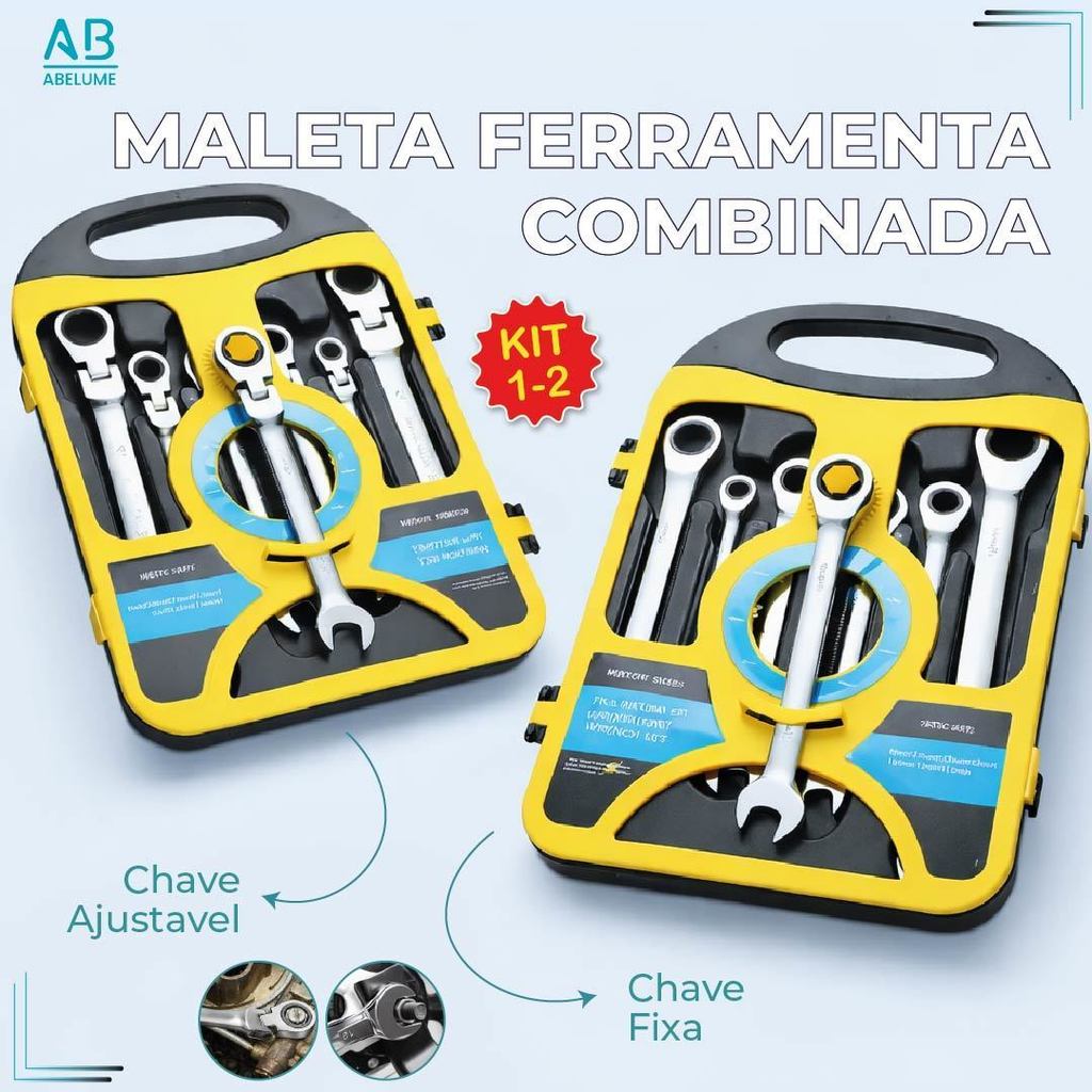 Maleta Combinada com Chave Ajustável ou Fixa com 7 Chaves Catraca de Alta Qualidade