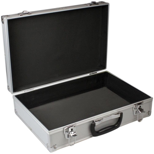 MALETA DE ALUMINIO MEDIA 42 X 28 X 12 Excelente maleta em alumínio ideal para organização e transporte de ferramentas, acessórios, manicure, laptop, bijuterias, etc. - Maleta de tamanho Médio sem Divisórias; - Em alumínio - Revestimento interno em EVA resistente - Medidas: 42 x 28 x 12cm; - Marca: Noll;