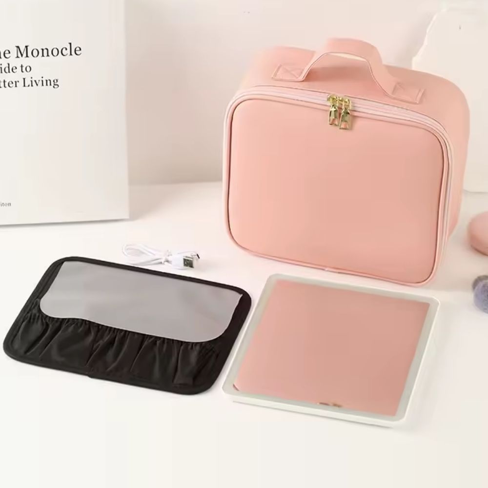 Maleta de Maquiagem com Espelho LED Organizador Profissional Necessaire Viagem