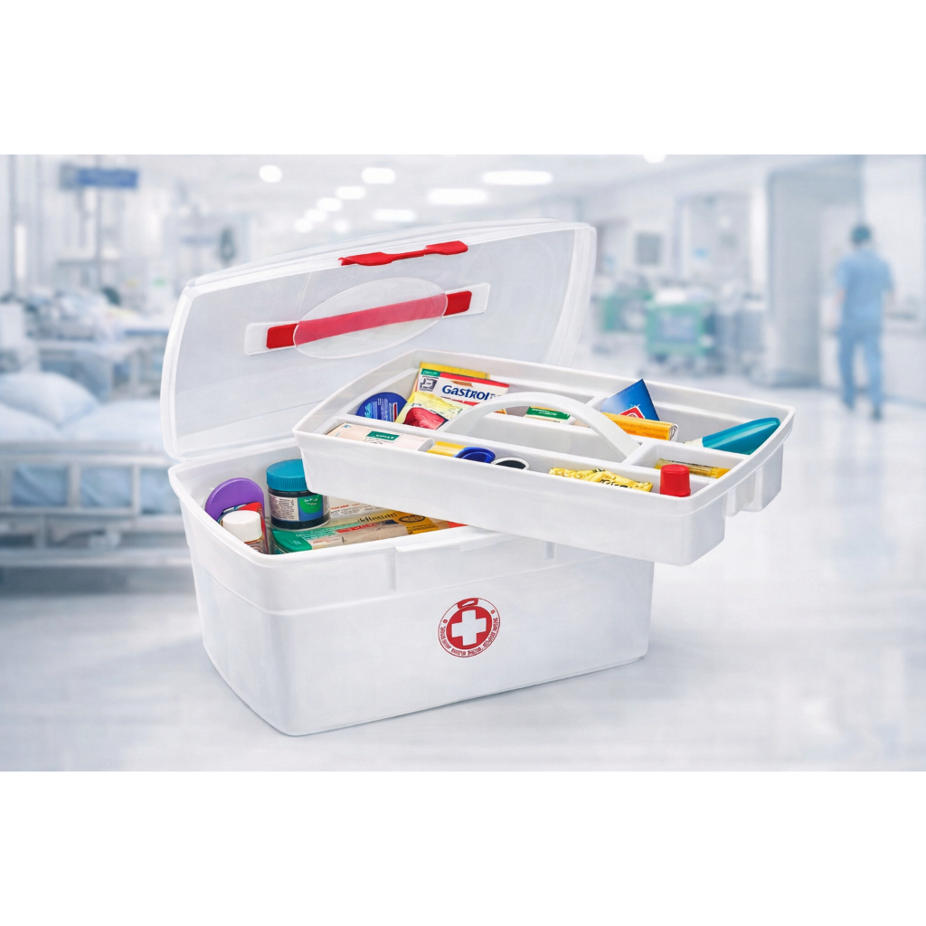 Maleta de Medicamentos Organizadora – Ideal para Casa, Clínica e Viagem Mantenha seus medicamentos e itens de primeiros socorros sempre organizados, protegidos e ao alcance das mãos. A maleta de medicamentos é prática, resistente e perfeita para o dia a dia, oferecendo segurança e organização em um só produto. Produzida em material plástico de alta qualidade, conta com bandeja interna removível, que facilita a separação de remédios, curativos, pomadas e outros itens essenciais. Seu design funcional permite uma visualização rápida do conteúdo, evitando bagunça e perda de tempo. ✅ Principais vantagens: Organização prática e eficiente Bandeja interna com divisórias Tampa resistente e fechamento seguro Alça para transporte fácil Ideal para medicamentos e primeiros socorro 📏 Medidas: 39 x 24 x 20,5 cm (comprimento x largura x altura) 🏠 Indicado para: Uso doméstico Clínicas e consultórios Viagens e emergências Escritórios e empresas