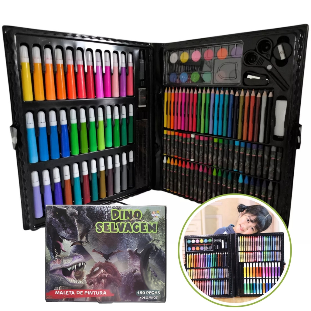 Maleta de pintura Estojo Infantil 150 peças Masculino Feminino Escolar Lápis Canetinha Completo