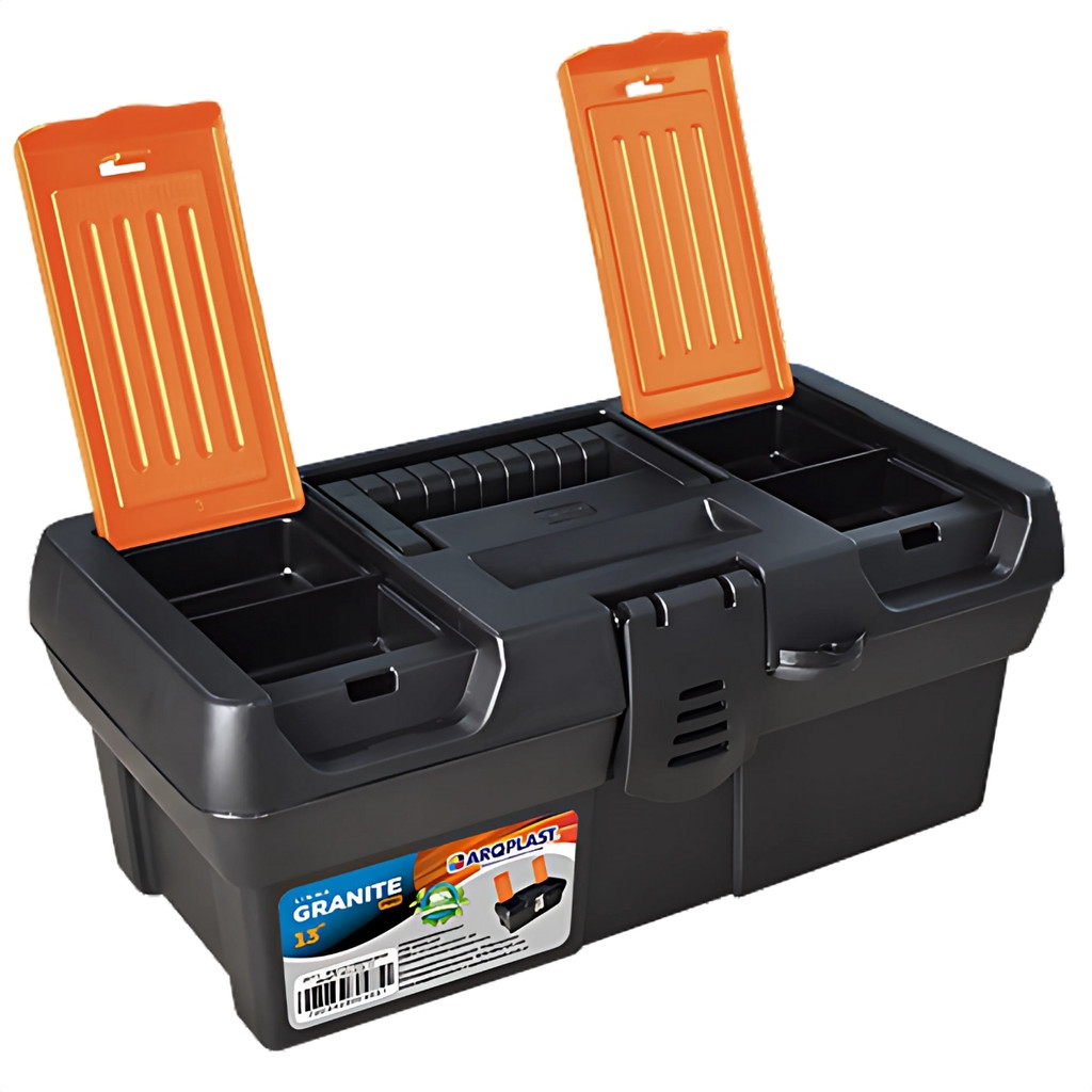 Esse anúncio contém: 01 Maleta. A Maleta de Ferramentas Granite Pro Alta – 13" é ideal para armazenar e transportar acessórios com segurança e organização. Possui alça resistente para fácil manuseio e trava reforçada para maior proteção. Seu design compacto e durável garante praticidade no dia a dia. Conta com 2 compartimentos na tampa para melhor organização. Perfeita para profissionais e entusiastas que buscam qualidade e eficiência. Informações do produto: Medida do organizador (AxLxC): 13,5cmX19,5cmX32,5cm. Cor: Preta. Material: Plástico. Linha: Organizador. Fabricante: Arqplast. - Produto novo e em estoque; - As cores do tecido ou produto podem variar de acordo com o lote de fabricação; - Todos os produtos têm seguro contra extravio.