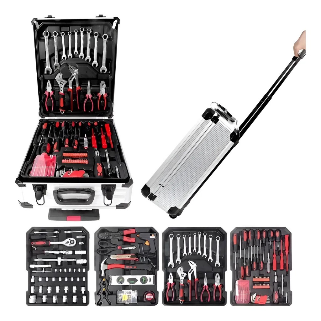 Maleta Kit Completo Jogo Ferramentas Manuais Alumínio Prateado Cinza Conjunto 186 Pçs Pronta Entrega