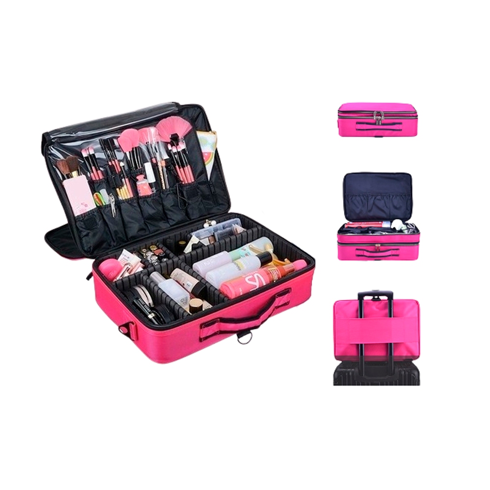 Linda maleta mochila extra grande para maquiagem, forrada internamente na cor preta, com compartimento para pincéis, retrátil com divisórias, paletas grandes e bolsos para maquiagem, a alça de mão transforma em mochila com alças reforçadas para carregar nas costas. Divisórias removíveis e que podem ser ajustadas, compartimentos internos com zíper e fechamento com tiras autocolantes, parte externa com vão para ajustar a maletas com carrinho, parte interna revestida com eva para evitar danos aos produtos e pode ser usada como mochila. • Dimensões 40 X 29 X 14 CM 3 DIVISÕES - Linda Maleta Mochila Extra Grande para Maquiagem; - Forrada internamente na cor Preta ; - Compartimento para Pinceis - Compartimentos com Bolsos para Maquiagem - Compartimentos para Paletas Grandes - Alça de Mão Transforma em Mochila com alças reforçadas para carregar nas costas - Compartimento Retrátil com Divisórias não contem maquiagem, não possui espelho