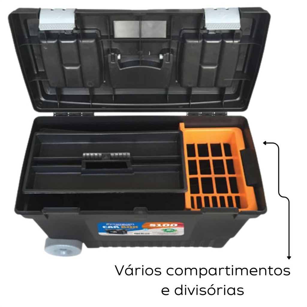 Esse anúncio contém: 01 Maleta Car Box. Maleta Car Box com rodinhas, ideal para transporte prático e seguro de ferramentas e acessórios. Conta com alças resistentes, travas de segurança e diversas divisórias internas para organização eficiente. Seu design compacto facilita o armazenamento e o manuseio em diferentes ambientes. Estrutura robusta em plástico durável, garantindo leveza e resistência ao uso diário. Perfeita para profissionais e uso doméstico. Informações do produto: Medida da Maleta (AxLxC): 41,5cmX30cmX59,5cm. Cor: Preta. Material: Plástico. Linha: Maletas. Fabricante: Arqplast. - Produto novo e em estoque; - As cores do tecido ou produto podem variar de acordo com o lote de fabricação; - Todos os produtos têm seguro contra extravio.