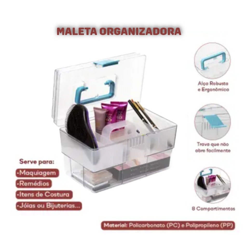 Descubra a arte da organização com elegância com a Maleta Organizadora. Esta não é apenas uma maleta; é a chave para transformar o caos em harmonia, independentemente do que você deseje armazenar. Seja para suas joias preciosas, a coleção de maquiagem, remédios essenciais, ou até mesmo itens de costura, esta maleta é a companheira perfeita para manter tudo em seu lugar, com um toque de beleza inconfundível. Com um design tão versátil quanto estético, nossa Maleta Organizadora é a solução definitiva para quem busca praticidade sem abrir mão do estilo. Cada compartimento é pensado para oferecer o máximo de funcionalidade, permitindo que você encontre facilmente o que precisa, quando precisa. Permita-se viver uma vida mais organizada e livre de desordem. Com nossa Maleta Organizadora, cada objeto tem seu lugar, e cada momento de busca se transforma em uma experiência agradável. Este é o momento de redescobrir o prazer na organização, onde funcionalidade e beleza se encontram para inspirar seu dia a dia. Material do Produto: Policarbonato (PC) + Polipropileno (PP) Dimensões (C x L x A): 27,9 x 16,5 x 17 cm