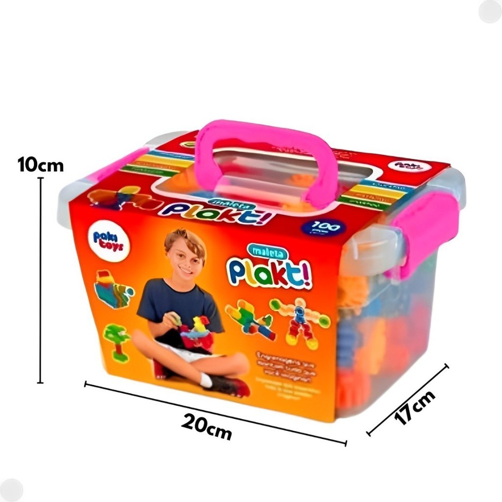 Maleta Plakt Formas De Montar Coloridas Infantil 100 Peças 1292B - Pakiplast