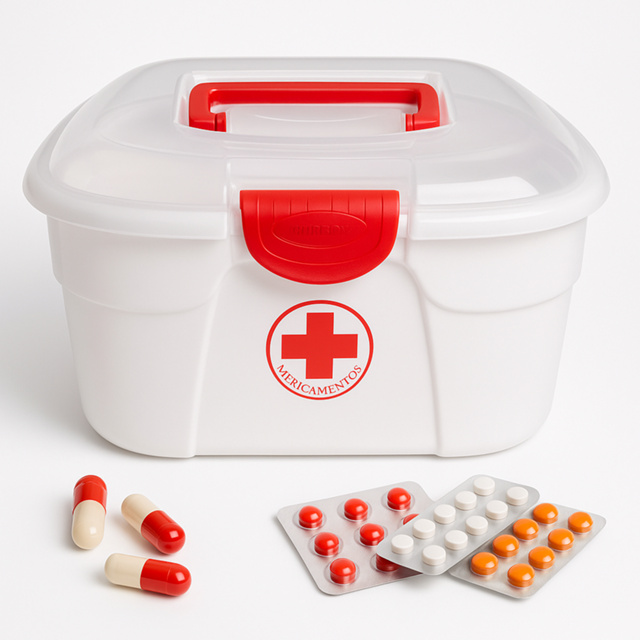 ✅ PRODUTO COM NOTA FISCAL 🚀 ENVIO IMEDIATO Organize seus medicamentos de forma prática e segura com a nossa maleta de medicamentos compacta e resistente. Com compartimentos bem distribuídos e design portátil, ela é ideal para armazenar e transportar seus remédios com facilidade, seja em casa, no trabalho ou em viagens. MALETA GRANDE: ◼ Dimensões: 18 x 25,4 x 29,5cm ◼ Material: Plástico de Alta Resistência (Livre de PBA) ◼ Capacidade: Aproximadamente 14 Litros ◼ Tampa com Trava de Segurança MALETA PEQUENA: ◼ Dimensões: 17 x 16,8 x 19,5cm ◼ Material: Plástico de Alta Resistência (Livre de PBA) ◼ Capacidade: Aproximadamente 7 Litros ◼ Tampa com Trava de Segurança