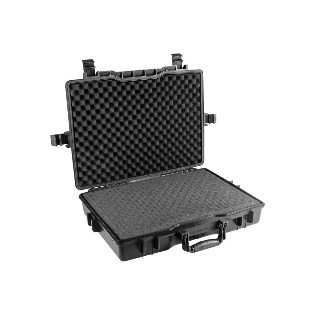 Indicada para acondicionamento de produtos que requerem maior cuidado no transporte e armazenamento. Possui proteção IP65 (6 = totalmente protegida contra poeira e 5 = Protegida contra jatos d'água). Possui válvula manual de compensação de pressão que equilibra a pressão interior com a exterior, facilitando a abertura da maleta. Conta com índice de proteção contra impactos mecânicos (IK-06), espuma pré-cortada em blocos (15 mm x 15 mm x 60 mm), tampa superior tipo "caixa de ovos" e 4 travas. Conteúdo da Embalagem: 1 Maleta anti impacto. Detalhes Técnicos: Modelo: MIV 545 Material: PP (Polipropileno) Cor: Preta Comprimento: 54,5 cm Largura: 42,5 cm Altura: 12 cm Comprimento interno: 48,5 cm Largura interna: 35,3 cm Altura interna: 10,5 cm Capacidade máxima de carga: 10,0 kgf Índice de proteção: IP 65 Índice de proteção contra impactos mecânicos: IK-06 Peso: 3,90 kg