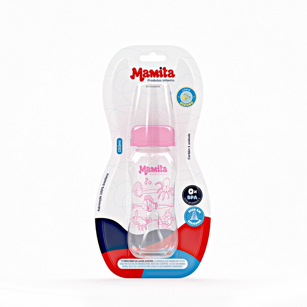 MAMADEIRA MAMITA DECORADA BICO SILICONE 150ML A Mamadeira Mamita foi desenvolvida para garantir conforto e praticidade na hora de amamentar e alimentar o bebê. Fabricada com bico de silicone macio e confortável que se adapta à cavidade bucal da criança e ainda acompanha capuz antivazamento. Características: Livre de BPA Pacote com 01 unidade Bico de silicone redondo Fácil de utilizar, limpar e montar. Produto certificado pelo INMETRO Cores Disponíveis: 1- AZUL 2- ROSA ***POR GENTILEZA ATENÇÃO NA HORA DE ESCOLHER A COR DO PRODUTO, CERTIFIQUE-SE DE QUE ESCOLHEU A COR DESEJADA*** Livre de BPA: não liberam nenhuma substância tóxica no contato com altas temperaturas e podem ir ao freezer, micro-ondas e lava-louças. Bico de Silicone: A exclusiva válvula do bico é flexionada para se adequar ao ritmo de sucção do bebê. O bebê controla o fluxo de leite, o que reduz a amamentação excessiva, a regurgitação e os gases. Limpeza e Esterilização: A limpeza se destina à remoção de resíduos, enquanto que a esterilização refere-se à eliminação de bactérias e germes. Antes do primeiro uso de qualquer tipo de bico artificial, é preciso fervê-lo por, pelo menos, cinco minutos em fogão convencional. A mamadeira deve ser colocada em um recipiente onde fique coberta completamente pela água. Após a esterilização (ferver em água) espere o bico esfriar antes de oferecer ao bebê. Depois de o bebê fazer uso, os bicos devem ser limpos com sabão neutro e água corrente com escovas próprias para a higienização de mamadeiras. Sempre que o bebê for utilizar a mamadeira deve-se fazer novamente a esterilização, pois o leite é um meio de cultura rico para bactérias e fácil de ser contaminado. Independente da idade da criança, uma higienização rigorosa deve ser realizada para prevenir riscos de doenças e infecções. "O Ministério da Saúde adverte: A criança que mama no peito não necessita de mamadeira, bico ou chupeta. O uso de mamadeira, bico ou chupeta prejudica o aleitamento materno." REFP-254