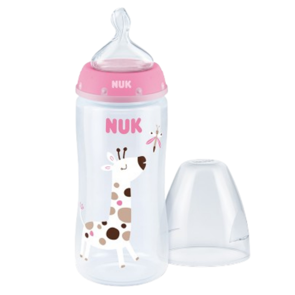 Mamadeira Nuk First Choice 300 mL Cuidar do seu bebê é garantir que ele tenha o melhor. A Mamadeira NUK First Choice com Controle de Temperatura foi desenvolvida especialmente para te ajudar nessa missão. Com seu inovador indicador de temperatura, você terá a certeza de que a mamadeira está na temperatura ideal para o seu bebê, evitando queimaduras e desconfortos. O que torna essa mamadeira única: • Segurança em primeiro lugar: O indicador de temperatura muda de cor, te alertando se a mamadeira está muito quente. • Conforto para o bebê: Bico em silicone com formato anatômico, que se adapta perfeitamente à boca do bebê, reduzindo cólicas e facilitando a amamentação. • Prática para os pais: Fácil de limpar e esterilizar, além de ser compatível com outros produtos da linha NUK. • Qualidade comprovada: A NUK é a marca de mamadeiras mais recomendada por pediatras na Alemanha. Conteúdo da Embalagem: 01 - Mamadeira Nuk First Choice 300 mL.
