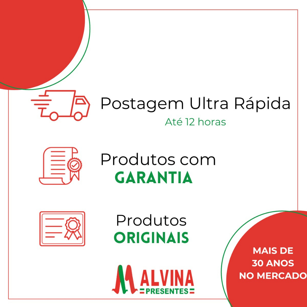 - Vendido por loja bem avaliada (Malvina Presentes — 5.0/5)