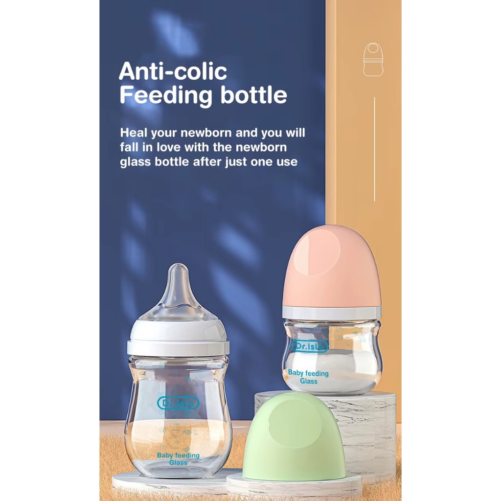 Mamadeira De Vidro Dr Isla Baby Glass Sistema Anti Colica BPA Free 160 ml ou 90 ml