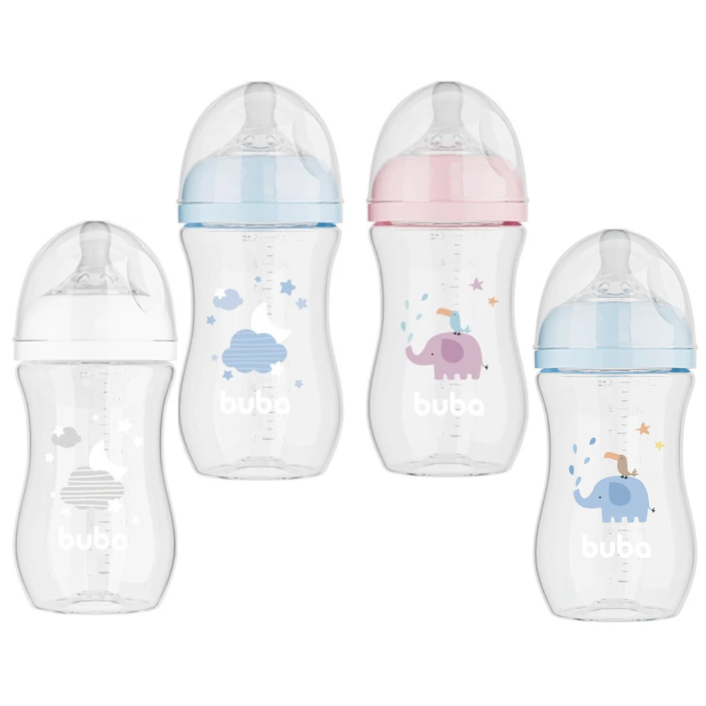 A linha de mamadeiras da Buba possui bico ultrasoft: bico ultra suave e flexível com formato de seio, para estimular a amamentação natural (como se fosse no seio), facilitando a amamentação pelo seio e pela mamadeira. - Menos cólica: o sistema anticólica clinicamente comprovado agora está integrado no bico, facilitando a montagem correta da mamadeira. À medida que o bebê mama, a válvula exclusiva do bico se abre para permitir a entrada de ar na mamadeira, e não na barriga do bebê. - Sem risco de vazamento: as mamadeiras foram projetadas para que não ocorra vazamento durante a alimentação, proporcionando uma agradável experiência de alimentação. - Fácil de limpar: possui um gargalo largo e cantos arredondados. - Fácil de segurar: possui design exclusivo, a mamadeira é fácil de segurar em qualquer direção até mesmo para as mãozinhas do bebê, garantindo mais conforto. - Livre de BPA, sendo 100% atóxico