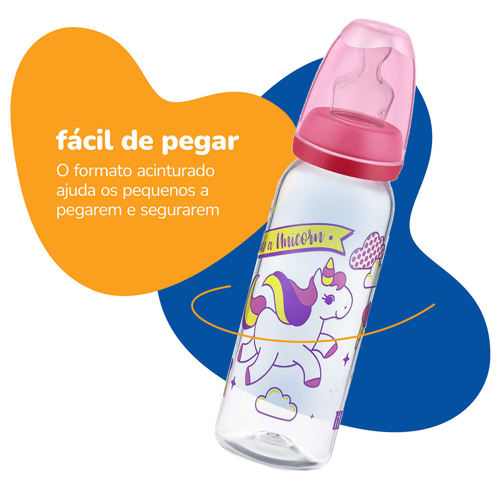 Mamadeira Magia Bico de Silicone 240ml 6m+ Rosa – Lillo A Mamadeira Magia 240ml Lillo, foi especialmente elaborada com desenhos modernos e cores alegres. Seu bico em silicone macio e flexível é atóxico e de fácil limpeza. Acompanha disco de vedação, para evitar vazamentos durante o transporte. A mamadeira é livre de BPA. O MINISTÉRIO DA SAÚDE ADVERTE: A CRIANÇA QUE MAMA NO PEITO NÃO NECESSITA DE MAMADEIRA, BICO OU CHUPETA. O USO DE MAMADEIRA, BICO OU CHUPETA, PREJUDICA O ALEITAMENTO MATERNO. Principais Características: - Bico Tamanho 2 (6m+) - Cores Alegres - Fácil de limpar - Livre de BPA - Bico em Silicone - Com tampa, rosca de vedação - Capacidade: 240ml Especificações Técnicas: - Conteúdo da Embalagem: 1 Mamadeira 240ml – Tamanho 2 - Composição/Material: Polipropileno e Silicone - Garantia: 90 Dias (Contra Defeito de Fabricação Pelo Fabricante) - Certificação: INMETRO CE-PUR /IQB-000632 - Referência do Fabricante: 625531 - EAN: 7896033211680 - Marca: Lillo Imagens Meramente Ilustrativas. As cores e estampas podem variar de acordo com o lote do fabricante.