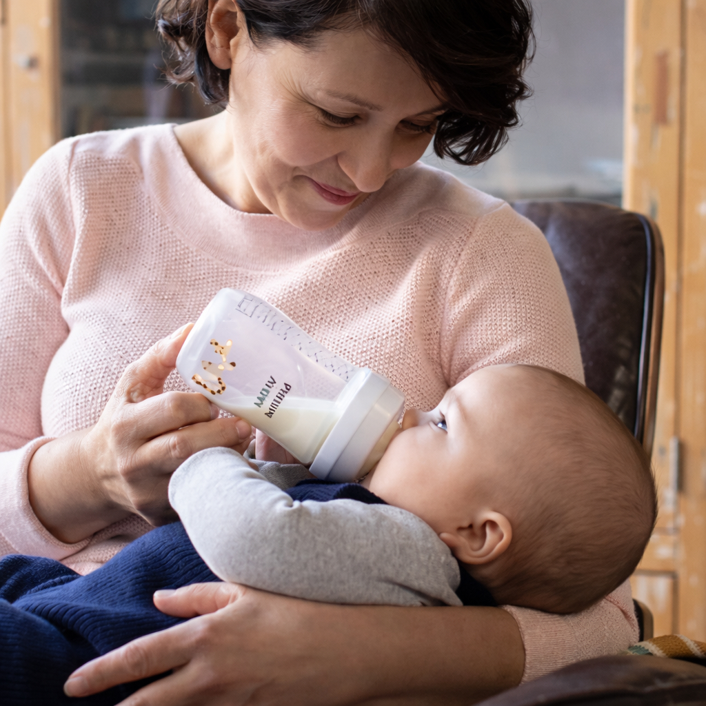 Mamadeira Pétala Avent 3.0 Decorada 260ml 1m+ Girafa Philips Avent / SCY903/66 Ao contrário de outras mamadeiras, o sistema anticólica clinicamente comprovado agora está integrado no bico, reduzindo as cólicas e regurgitações do bebê. A mamadeira anticólica foi projetada para manter o ar longe da barriga do bebê para reduzir cólicas e desconforto, além de minimizar interrupções na alimentação. Com a válvula anticólica integrada, o ar é liberado para longe da barriga do bebê. Sistema anticólica: - Válvula inovadora que reduz a cólica e o desconforto, ventilando ar para dentro da mamadeira e não para a barriga do bebê. Conforto comprovado: - O formato do bico e sua textura reforçada ajudam a prevenir o colabamento para uma alimentação confortável e sem interrupções. Fácil de montar e limpar: - Com apenas 4 peças e bocal largo, a linha Anti-colic oferece uma montagem simples, rápida e fácil de limpar. Tampa antivazamentos: - Projetada para que não ocorra vazamento durante o transporte. Conteúdo da Embalagem: - Contém 1 Mamadeira 260ml. Características: - Ortodôntica e sem BPA. - Fácil manuseio e uso. - Marca: Philips Avent. - Referência: SCY903/66. - Certificado de segurança: INMETRO. "O Ministério da Saúde adverte: A criança que mama no peito não necessita de mamadeira, bico ou chupeta. O uso de mamadeira, bico ou chupeta prejudica o aleitamento materno".
